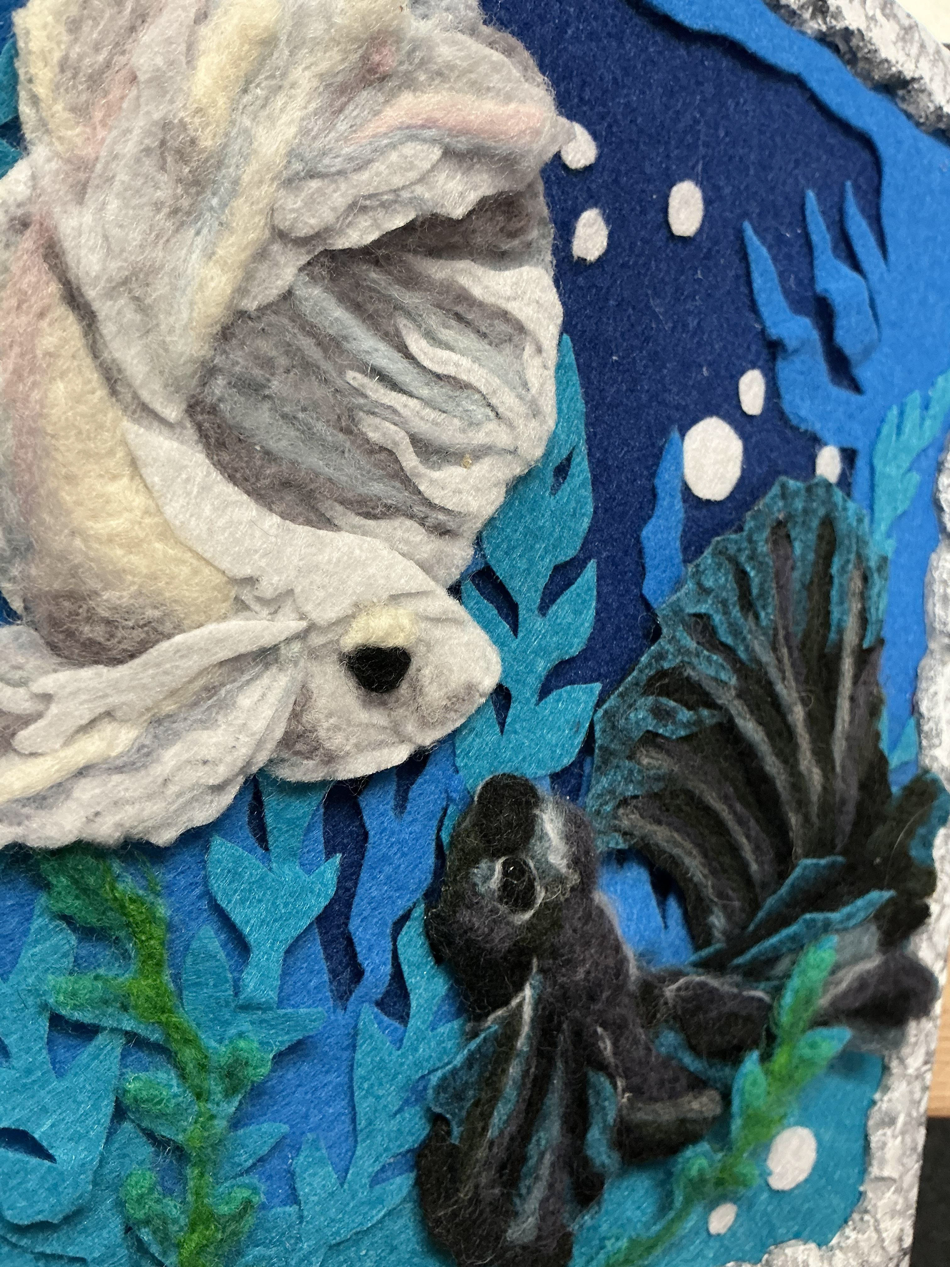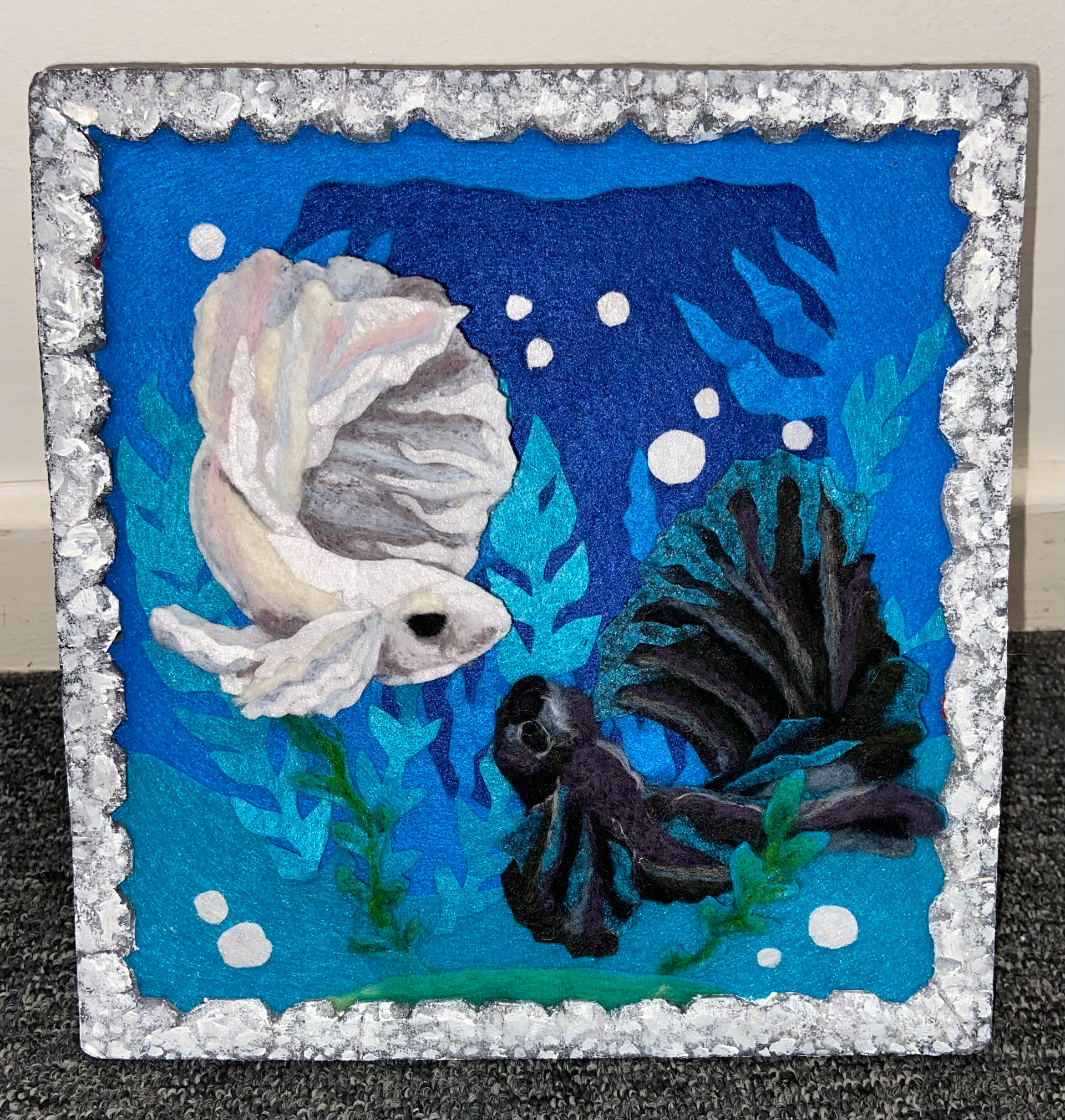 Hand made felted Koi fish frame for the Batsford Prize competition.